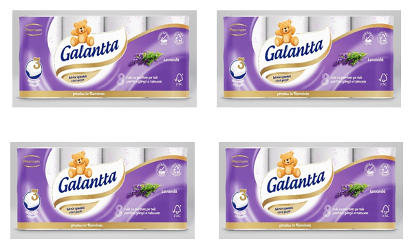Galantta liliac este o hartie igienica in 3 straturi, de culoare alba cu model mov, cu parfum fin de liliac. Este moale si delicata cu pielea.